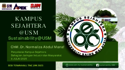 CGSS, Pusat Kajian Kelestarian Global (2025) Pusat Kajian Kelestarian Global (Centre for Global Sustainability Studies (CGSS),(2025) Kampus Sejahtera @ USM Town Hall TNCJIM Induk v2.0. Universiti Sains Malaysia.