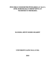Shariff, Hanisha Mohd (2024) Pencirian Dosimetri Pendarkilau Kaca Zink Borosilikat Didop Dengan Neodimium Trioksida. Masters thesis, Perpustakaan Hamzah Sendut.
