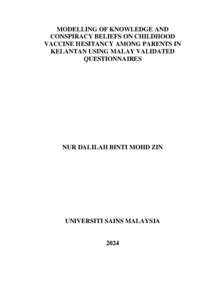 Zin, Nur Dalilah Mohd (2024) Modelling of knowledge and conspiracy beliefs on childhood vaccine hesitancy among parents in Kelantan using Malay validated questionnaires. PhD thesis, Universiti Sains Malaysia.
