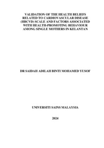 Yusof, Saidah Adilah Mohamed (2024) Validation of the health beliefs related to cardiovascular disease (HBCVD) scale and factors associated with health-promoting behaviour among single mothers in Kelantan. Masters thesis, Universiti Sains Malaysia.