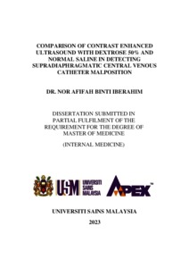 Iberahim, Nor Afifah (2023) Comparison of contrast enhanced ultrasound with dextrose 50% and normal saline in detecting supradiaphragmatic central venous catheter malposition. Masters thesis, Universiti Sains Malaysia.