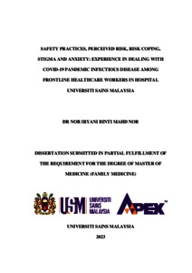 Nor, Nor Iryani Mahd (2023) Safety practices, perceived risk, risk coping, stigma and anxiety: experience in dealing with covid-19 pandemic infectious disease among frontline healthcare workers in Hospital Universiti Sains Malaysia. Masters thesis, Universiti Sains Malaysia.