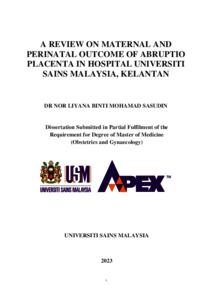 Sasudin, Nor Liyana Mohamad (2023) A review on maternal and perinatal outcome of abruptio placenta in Hospital Universiti Sains Malaysia, Kelantan. Masters thesis, Universiti Sains Malaysia.